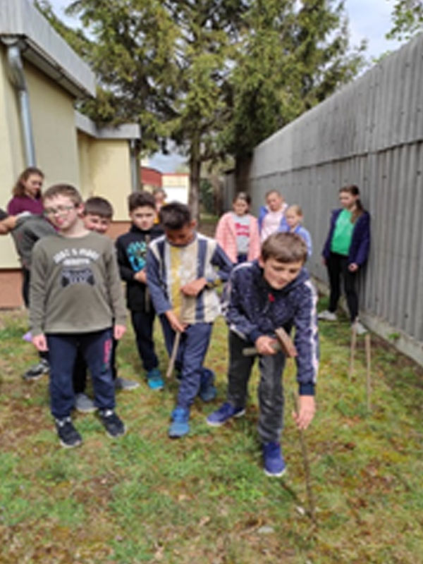 Alsó tagozaton a kicsik megtisztították a játszótér környékét. A második osztály iskolánk udvarán virágot ültettek. A negyedikes nebulók Kert-Kóstolgató pályázat keretein belül iskolakertet terveztek, telepítettek.